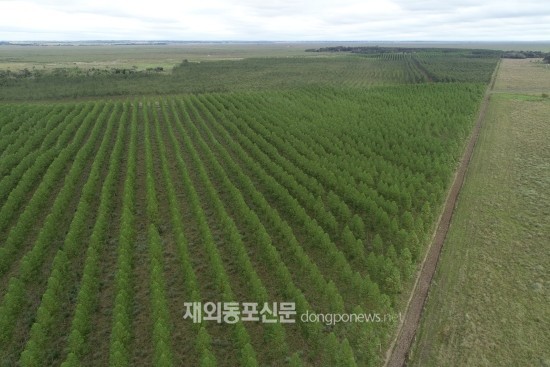 우리 법인이 유칼립투스 수종을 선택한 이유도 파라과이에서 잘 자라는 나무이기 때문입니다. 우리 법인이 먼저 시범적으로 조림과 관리를 해서 그 경험을 바탕으로 한국 기업들이 이곳에 진출하게 하는 게 목적입니다. 우리법인은 토지를 임대해서 나무를 심었는데 일부는 ‘분수-임대계약’ 형태로 임대료를 내지 않는 대신 나중에 나무를 수확해서 수익을 일정 비율로 나눠 갖는 조건으로 토지를 이용하고 있습니다. 조림지 토지주들은 혼목조림 형태로 조림지 안에서 소를 함께 키워서 부수적인 수입을 올리고 있습니다.