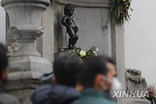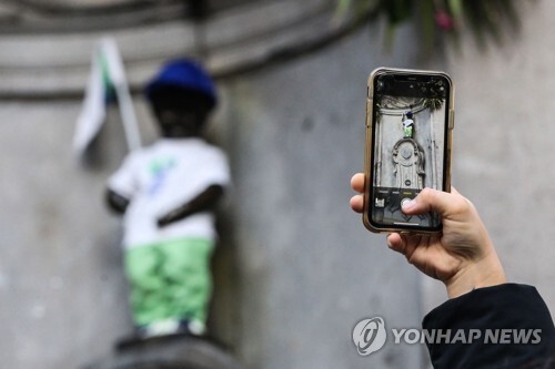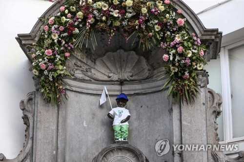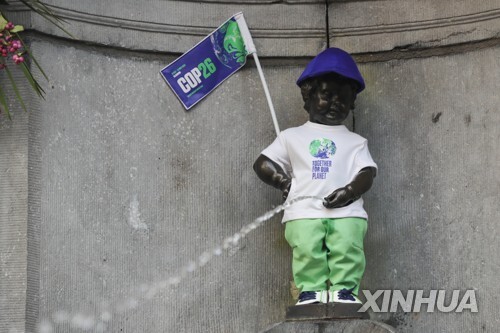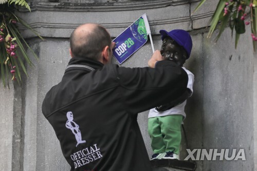 (브뤼셀=연합뉴스) 김정은 특파원 = 벨기에 수도 브뤼셀에서 사람들이 가장 많이 찾는 명물 중 하나인 '오줌싸개 소년'이 기후변화에 대응하기 위한 국제사회의 노력에 '동참'했습니다.