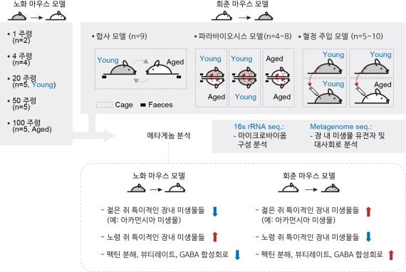 하지만 현재까지 다양한 회춘방법에 따른 노화과정과 장내 미생물군 유전체의 변화는 아직 비교된 바 없으며, 유익한 장내 미생물을 이용해 노령 쥐의 건강 수명을 연장한 연구는 없었다.