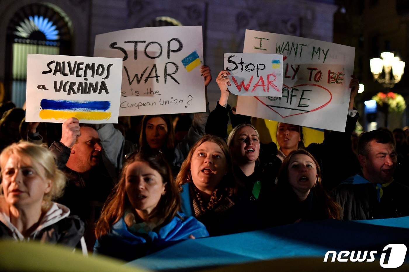 러시아가 우크라이나를 침공한 것에 대해 강력한 비판의 목소리로 항의하는 시위대의 행렬이 세계 각지에서 이어지고 있다. 일본 도쿄부터 이스라엘의 텔아비브와 미국 뉴욕까지 전세계 시민들이 러시아 대사관 앞에 모여 규탄했다.