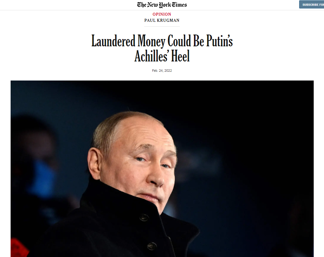 ■ NYT 폴 크루그먼 “세탁된 돈이 푸틴의 아킬레스건”