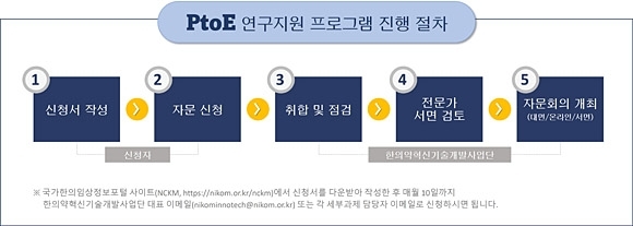 한국한의약진흥원 한의약혁신기술개발사업단은 16일 임상 한의사, 한의계 연구자·기업 등을 대상으로 ‘피투이(PtoE) 연구지원 프로그램’을 확대 운영한다고 밝혔다.