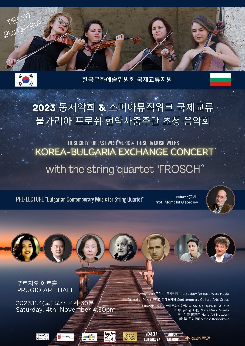 이번 공연에서는 소피아뮤직위크의 총 디렉터 몸칠 게오르기에프와 프로쉬 현악사중주(Frosch String Quartet)가 방한해 ‘불가리아의 현악사중주를 위한 현대음악’에 관한 세미나와 함께 불가리아 전통적 음악유산이 투영된 현대음악을 선보일 예정이다.